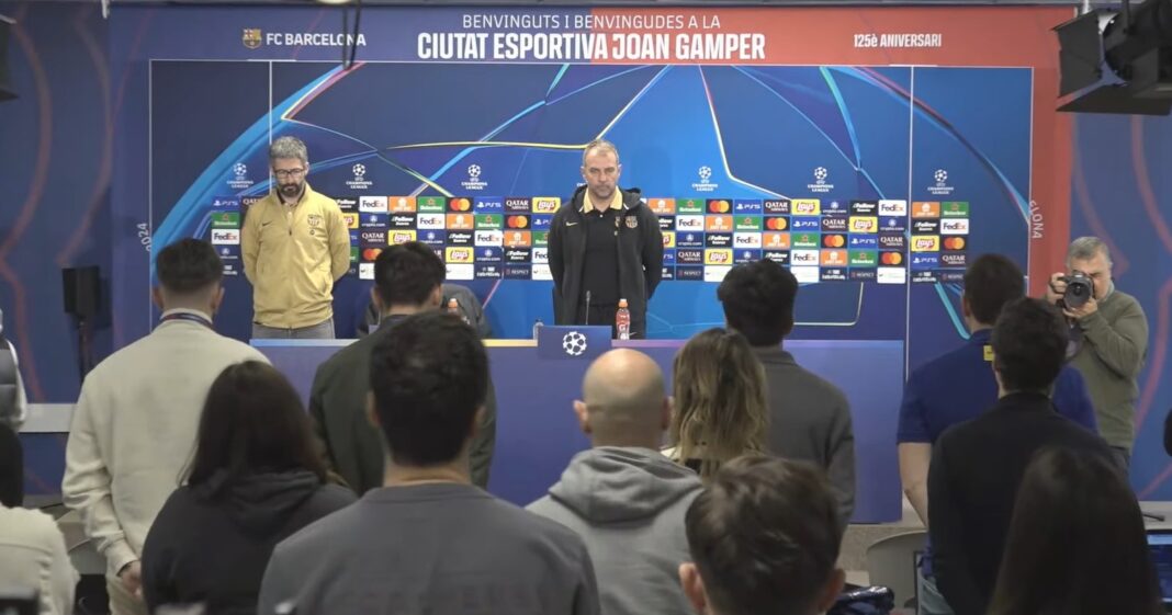 Das sieht man auch nicht oft: Zu Ehren von und in Gedanken an den verstorbenen Carles Miñarro García hat es am Montagmittag vor der Pressekonferenz mit Hansi Flick noch eine Schweigeminute im Medienraum gegeben. Der Mannschaftsarzt des FC Barcelona war am Samstag vor der Liga-Partie gegen Osasuna unerwartet verstorben. Die PK vor dem Champions-League-Achtelfinal-Rückspiel fand nur mit Flick und nicht wie sonst üblich auch noch mit einem Profi statt.